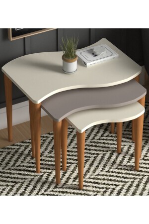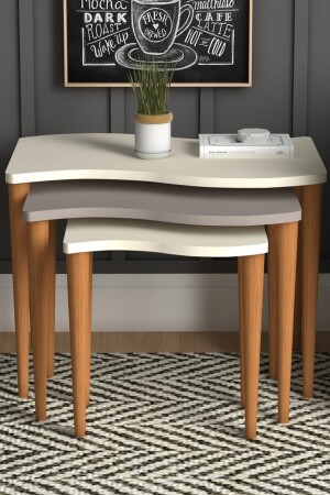 MNZ-Yagmur 3 قطع طاولة قهوة تعويض الذهب الأبيض 257T-T1