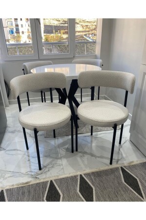 سلسلة MNZ-Barni Plain White Extendable Dining and Kitchen Table Set مع 6 مقاعد - بارني الارضي-06