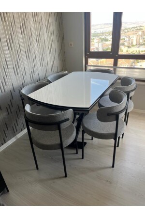 طاولة مُوسعة سلسلة MNZ-Astera + 6 قطع ثياب وجه الطفل المدخن المطبخ غرفة المعيشة غرفة الطعام مجموعة