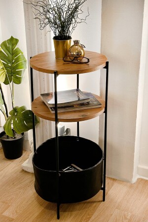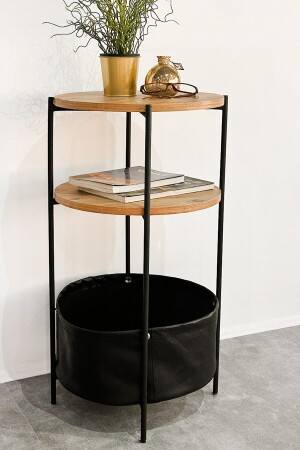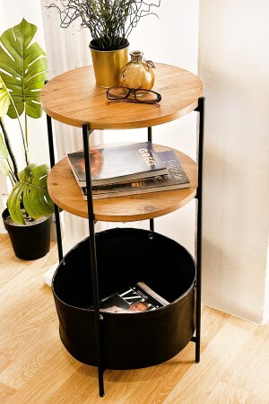 طاولة جانبية مع حقيبة ديكورية المادة المعدنية الملف 0.70 مم رقاقة فوق 18 مم ابعاد الطرف: 80 سم قطر رقاقة: 41 سم ارتفاع الحقيبة: 20 سم