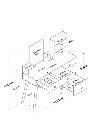 أحجام منتج MNZ: عرض: 122.2 سم عمق: 40 سم ارتفاع: 93.8 سم تمت إشارة إلى قياسات أكثر تفصيلا في صور المنتج. تضم الحزمة