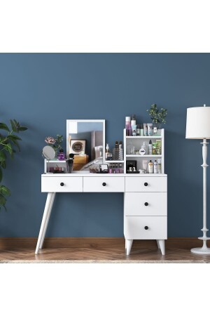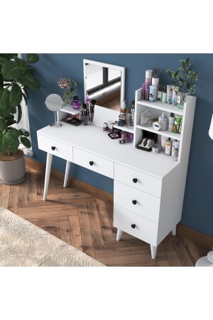 MNZ-Rani Bj102 طاولة تجميل مع 2 سلاسل ورفوف مرآة مجوهرات منظمة أبيض 2232