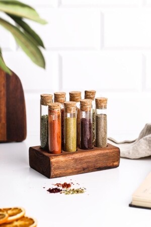MNZ- يتكون من 8 أنابيب زجاجية و 8 أوقات. قاعدة خشبية. غير المدرجة التوابل. حجم أنابيب زجاجية 10 سم عرض 2 سم 25 مم