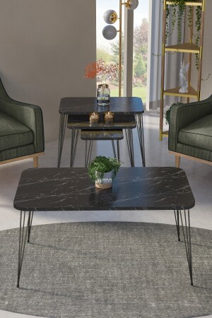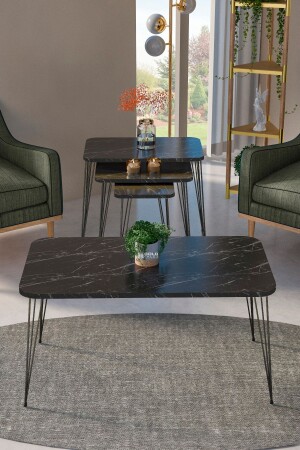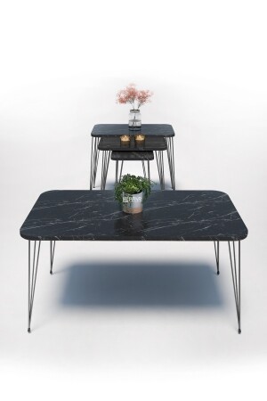 طاولة MNZ-Nesting Kr و طاولة القهوة Kr Set الأسود قدم Bendir سلك 1104 FMA1971