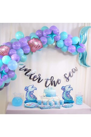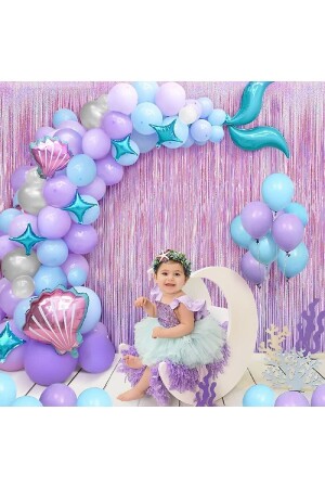 طائرات الـ MNZ-Mermaid Balloon Blue Purple Balloons Foil Fringe Curtain Set ديكورات عيد ميلاد الفتيات الأطفال