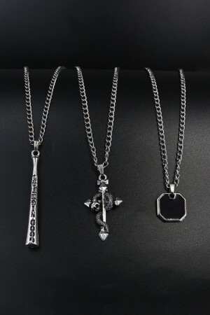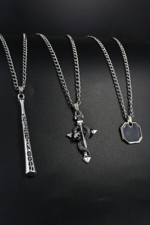طائر كرة البيسبول MNZ-3-Piece، صليب الثعبان والإينامل Tag رقبة عنق لون الفضة مجموعة DTDB482