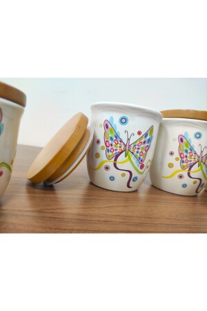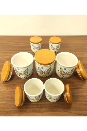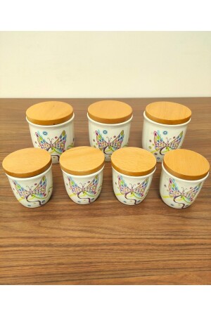 م.ن.ز-- مصنوع من البورتسلين. -تكون الغطاءات من خشب الخيزران. -تلائمة لمواجهة الأطعمة. -لا تحتوي على ماد