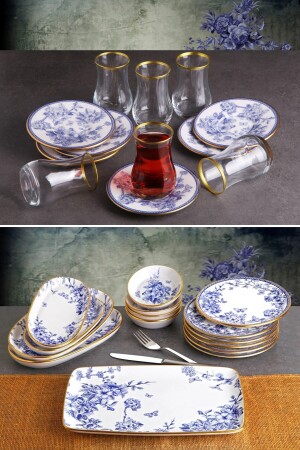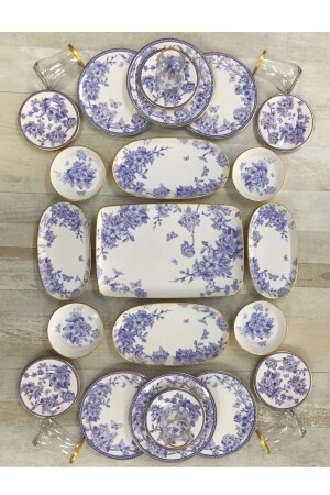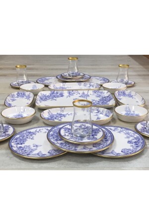 Çiğdem Blue Model 12 Kişilik 21 Parça Kahvaltı Takımı Kahvaltı Seti[ Mavi 12]