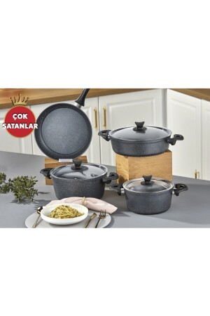 طباخ MNZ-Taç Master Cook 7 Piece Granite Pot Set 1 piece 20 cm قزمة عميقة (2.3 لتر) 1 piece 24 cm قزمة عميقة (3.9 لتر)
