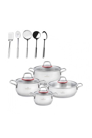 م.ن.ز-كاراكا إميرغان الفولاذ 13 قطعة مجموعة أدوات الطبخ مجموعة محتوى 16 سم بركة 1.5 لتر 18 سم بركة 2.2 لتر 22 سم بركة 3.