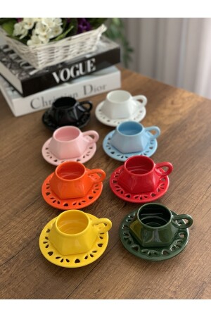 Sunum Tabaklı- Kahve Yanı Bardaklı 18 Parça 6 Kişilik Kahve Fincan Takımı- Seti