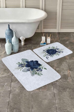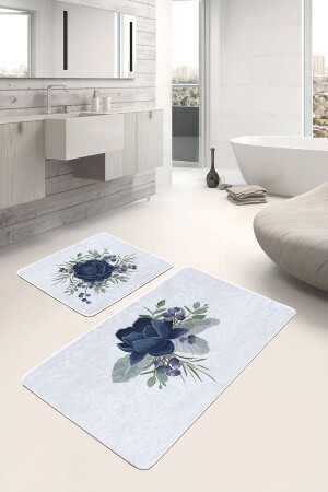 طراز MNZ-Navy Blue Rose المصممة على الطراز الرقمي المطبوع على طراز 2 قطع غير المنزلق على أساس حمام ومطبخ المطبخ Set PaspasTakimi-2-