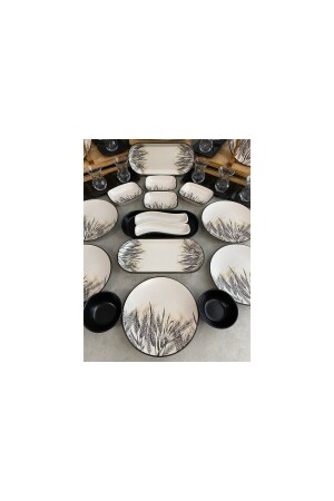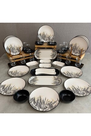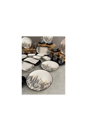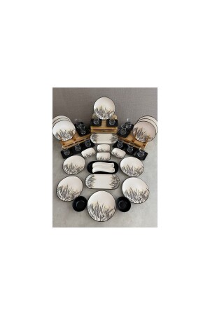 64 Parça 12 Kişilik Platin Modern Krem Kahvaltı Takımı
