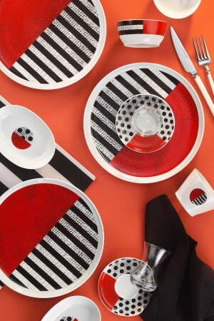 المزاج من الفورسيلان من MNZ-Kütahya مجموعة الإفطار 30 قطعة 12065 تتكون من 6 طوابق مسطحة 24 سم، 4 قوارب مربعة 15 سم،