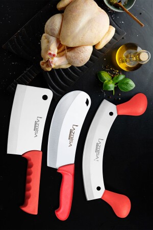 طقم سكين مطبخ MNZ-Set Cleaver دجاج البيتزا البصل بيتا Mincer Chopper Row Set 3pcs Mutfakk333