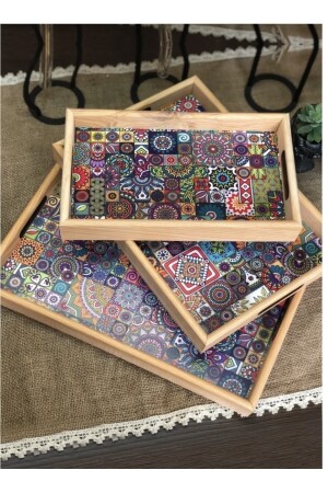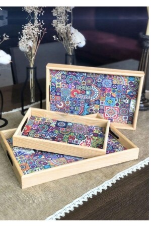 النمط من الخشب من النمط 3 قطع طاولة مجموعة 16x26cm 21x31cm 24x34cm
