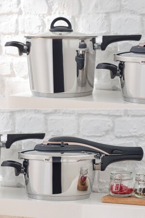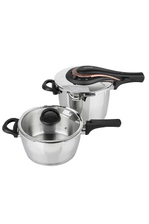 MNZ-Emsan Up-line Golden Pink 4+6 Lt Classic Stainless Steel Pressure Cooker Set "أحدث شكل من أشكال المطبخ الضغط... بفضل برامج الطبخ،