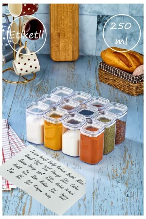 12'li Kapağı Kendinden Kaşıklı Ve Etiketli Baharatlık Seti 300 ml Gold Etiketli Cam Baharat Takımı