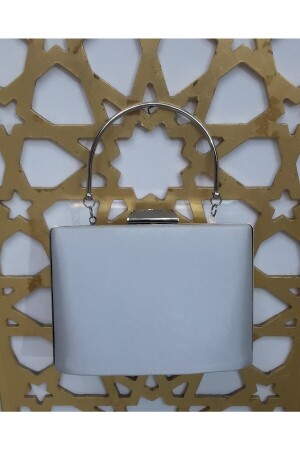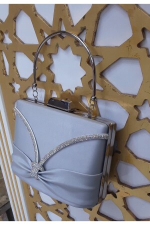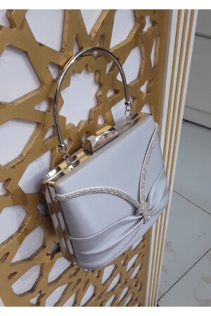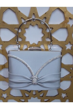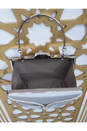 Kadın Yuvarlak Gümüş Taşlı Bilezik Aksesuarlı Abiye Clutch Portföy Çantası