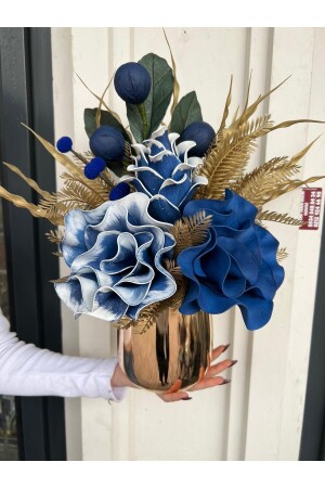 عبوة معدنية من الذهب من MNZ مع زهور اصطناعية رقم: 2