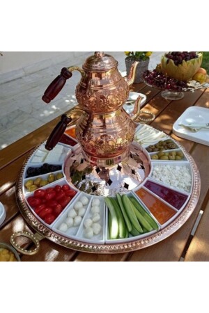 (MNZ-Tea) الإفطار الخدمة مع كوب فنجان النحاس محتويات: 1 كمبيرة. صالونة فطور النحاس (r:56cm)