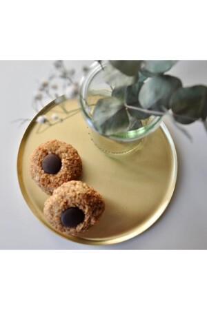 MNZ-Natural Calacatta Marble Round Tray مع معقب ذهبية MRM0128