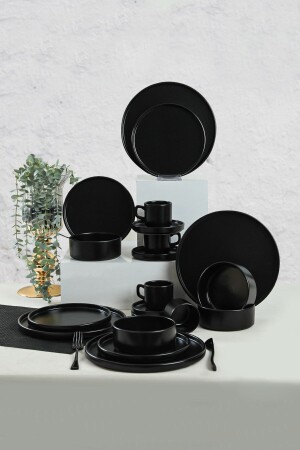 مادة: سيراميك • كيراميكا ماتت الأسود العشاء / الإفطار مجموعة 20 قطعة لـ 4 أشخاص • بنية السطح: ماتت • معلومات المنتج • الم