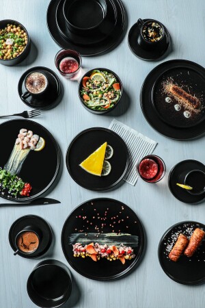 (MNZ-Matte) عشاء أسود / فطور مجموعة 30 قطعة لـ 6 أشخاص dmtaks202330
