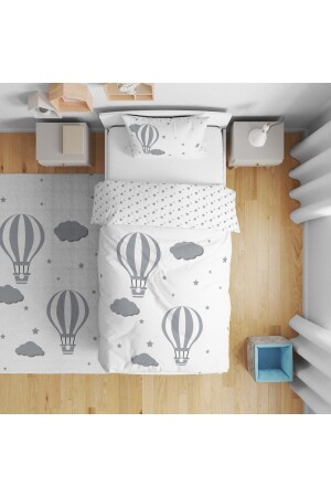 Mavi Balonlu Oturan Küçük Kız Desenli Tek Kişilik Bebek Çocuk Nevresim Seti