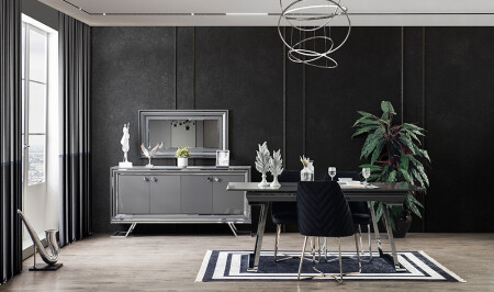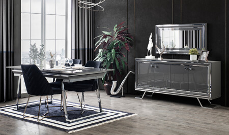 Crown Yemek Odası - Siyah - Silver