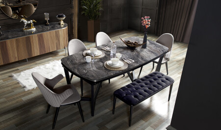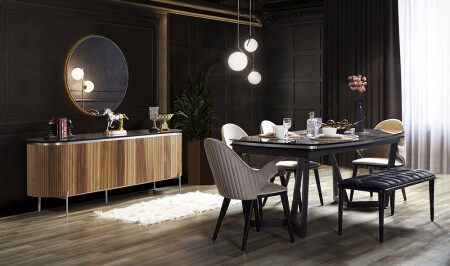 Crown Yemek Odası - Siyah - Silver