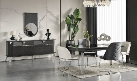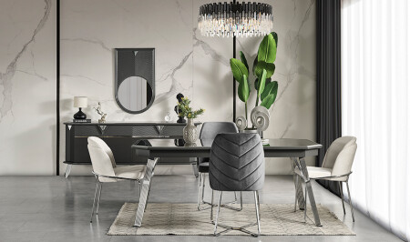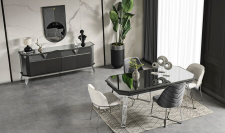 Crown Yemek Odası - Siyah - Silver
