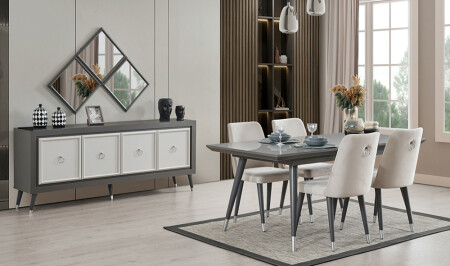 Crown Yemek Odası - Siyah - Silver