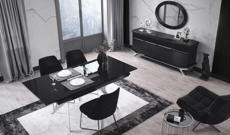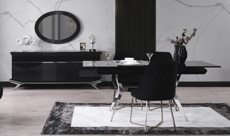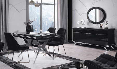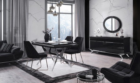 Crown Yemek Odası - Siyah - Silver