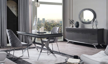 Crown Yemek Odası - Siyah - Silver