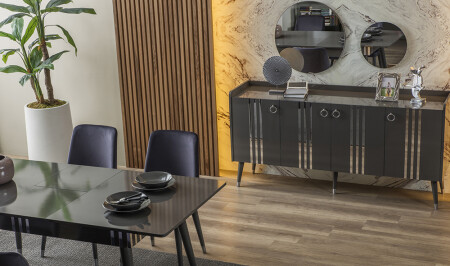 Crown Yemek Odası - Siyah - Silver