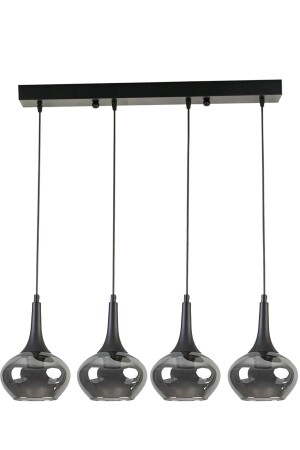 Pare Model Modern Spor Siyah 4'lu Glop Füme Camlı Avize