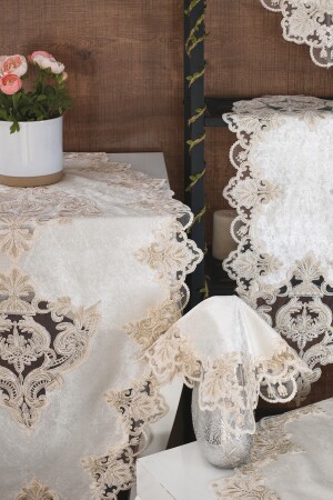 مُقسمة من طراز MNZ-Tile، خالية من الرعاية، خالية من البقع، ملابس طاولة من اللون، كريم 160 × 220 سم