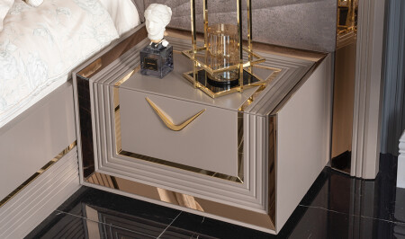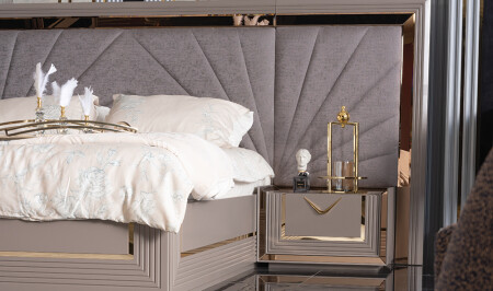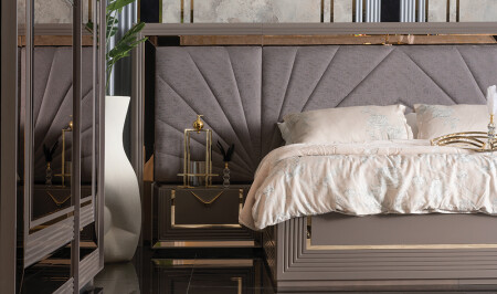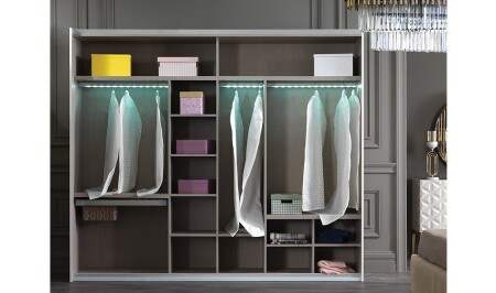 الملبس المزلق - قاعدة السرير والرأس 160 سم - الملابس والمرايا - 2 طاولات مل