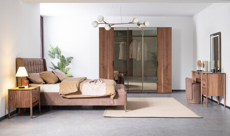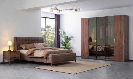 غرفة نوم بيكوز؛ خزانة ملابس من 5 أبواب - قاعدة السرير والرأس 160 سم - خزانة ملابس ومرايا - 2
