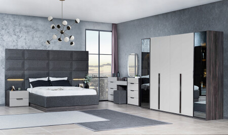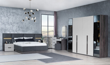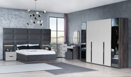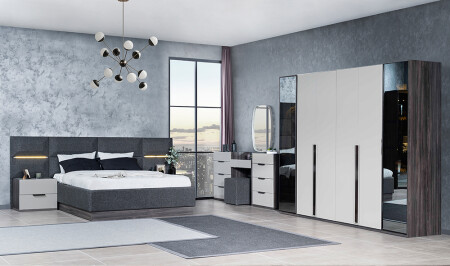 6 أبواب الحجرة - السرير والرأس - الملابس والمرايا - 2 طاولات جنب إلى جنب إلى جنب مع السرير هي مدرجة في السعر