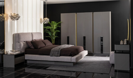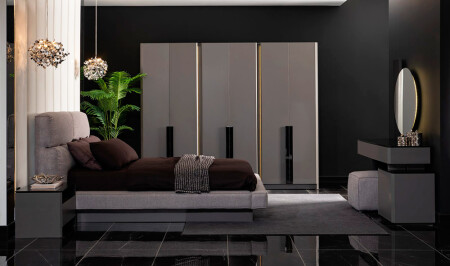 6 أبواب الحجرة - السرير والرأس - الملابس ، المرآة و 2 طاولات جنبًا إلى جنب السرير هي مدرجة في سعر المجموعة