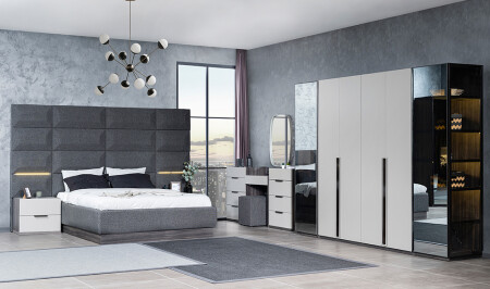 6 أبواب الحجرة - السرير والرأس - الملابس والمرايا - 2 طاولات جنب إلى جنب إلى جنب مع السرير هي مدرجة في السعر