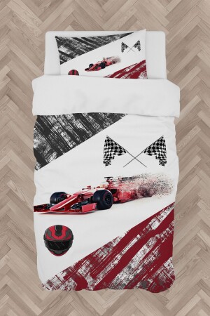 Rally Yarış Arabalı Desenli Mavi Çarşaflı 2 Yastık Kılıflı -Ranforce Tek Kişilik Nevresim Takımı