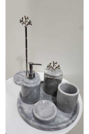 م.ن.ز-تتتكون من 1 طبق من الرخام + 1 مُوزع صابون صلب من الرخام + 1 مُوزع صابون سائل من الرخام + 1