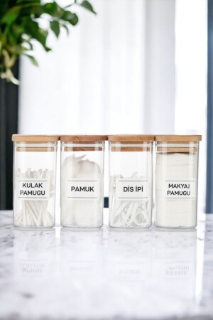 غطاء خشبي من قطعة 4 من MNZ علبة القطن الأكريلي والقطن والسلاسل الأسنان منظمة 300 مل حمام