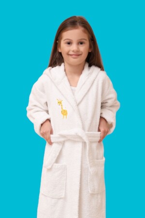 Çocuk Bornozu Kapüşonlu Beyaz %100 Pamuklu