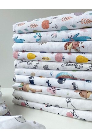 %100 Organik Pamuk Müslin Kumaştan 10'lu Bebek Ağız Mendili - Ağız Bezi (25X25 CM)