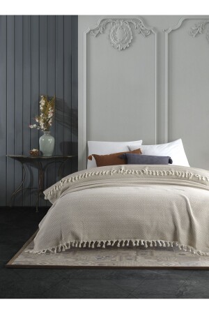 Saçaklı Pamuk Pike Çift Kişilik Loris Bej (200x230cm) 0903010124009