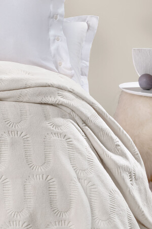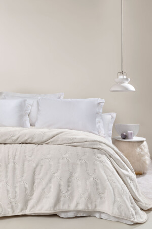 Krem Çift Kişilik Fransız Güpürlü Çeyizlik Battaniye Takımı